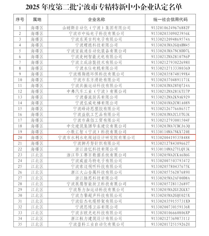 【喜報(bào)】我院成功獲評(píng)2025年度寧波市專精特新中小企業(yè)
