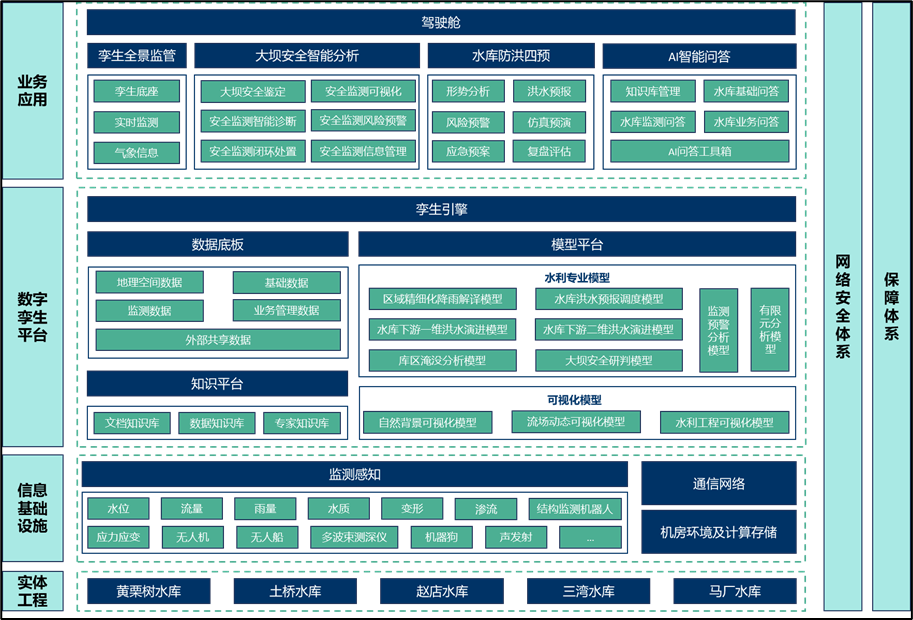 《方案》以黃栗樹等五座水庫為核心對象,進行了前瞻性的信息化總體設(shè)計。旨在通過引入先進信息技術(shù),構(gòu)建覆蓋水庫運行管理全生命周期的智能化體系。該體系以實現(xiàn)對水雨情、工情、供用水、水質(zhì)及安全狀況等關(guān)鍵要素的精準感知、動態(tài)監(jiān)測、智能分析與高效決策為核心目標,全面提升水庫在科學(xué)調(diào)度、風(fēng)險防控、管理效能與服務(wù)保障方面的綜合能力。主要建設(shè)內(nèi)容涵蓋智慧業(yè)務(wù)應(yīng)用、數(shù)字孿生平臺、信息基礎(chǔ)設(shè)施及網(wǎng)絡(luò)安全體系,共同構(gòu)成層次清晰、協(xié)同聯(lián)動、安全可靠的現(xiàn)代化水利信息化總體框架,為區(qū)域水安全與可持續(xù)發(fā)展奠定堅實的數(shù)字基石。