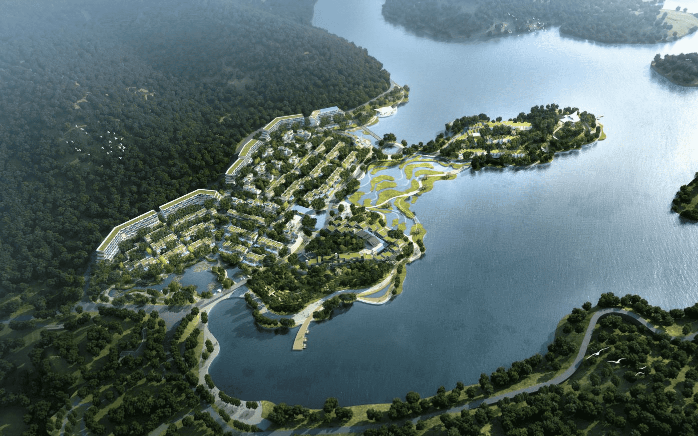 鎮(zhèn)海十字路地塊項(xiàng)目位于寧波市鎮(zhèn)海區(qū)九龍湖鎮(zhèn),十字路水庫(kù)西北側(cè)、九龍山東南側(cè)(原十字路村的位置)。本項(xiàng)目建成可延續(xù)水庫(kù)兩岸湖面,打造九龍湖生態(tài)活力景觀帶,聯(lián)通九龍湖片區(qū)重點(diǎn)活力空間,帶動(dòng)區(qū)域經(jīng)濟(jì)發(fā)展;通過(guò)酒店及配套設(shè)施打造多功能、多體驗(yàn)與多生態(tài)并存的濱水旅居綜合體,助力九龍湖區(qū)域升級(jí);項(xiàng)目建設(shè)充分尊重原有的地貌環(huán)境,打造與自然融為一體、生態(tài)豐富多樣的湖景活力社區(qū),提升九龍湖風(fēng)景區(qū)在寧波的影響力。