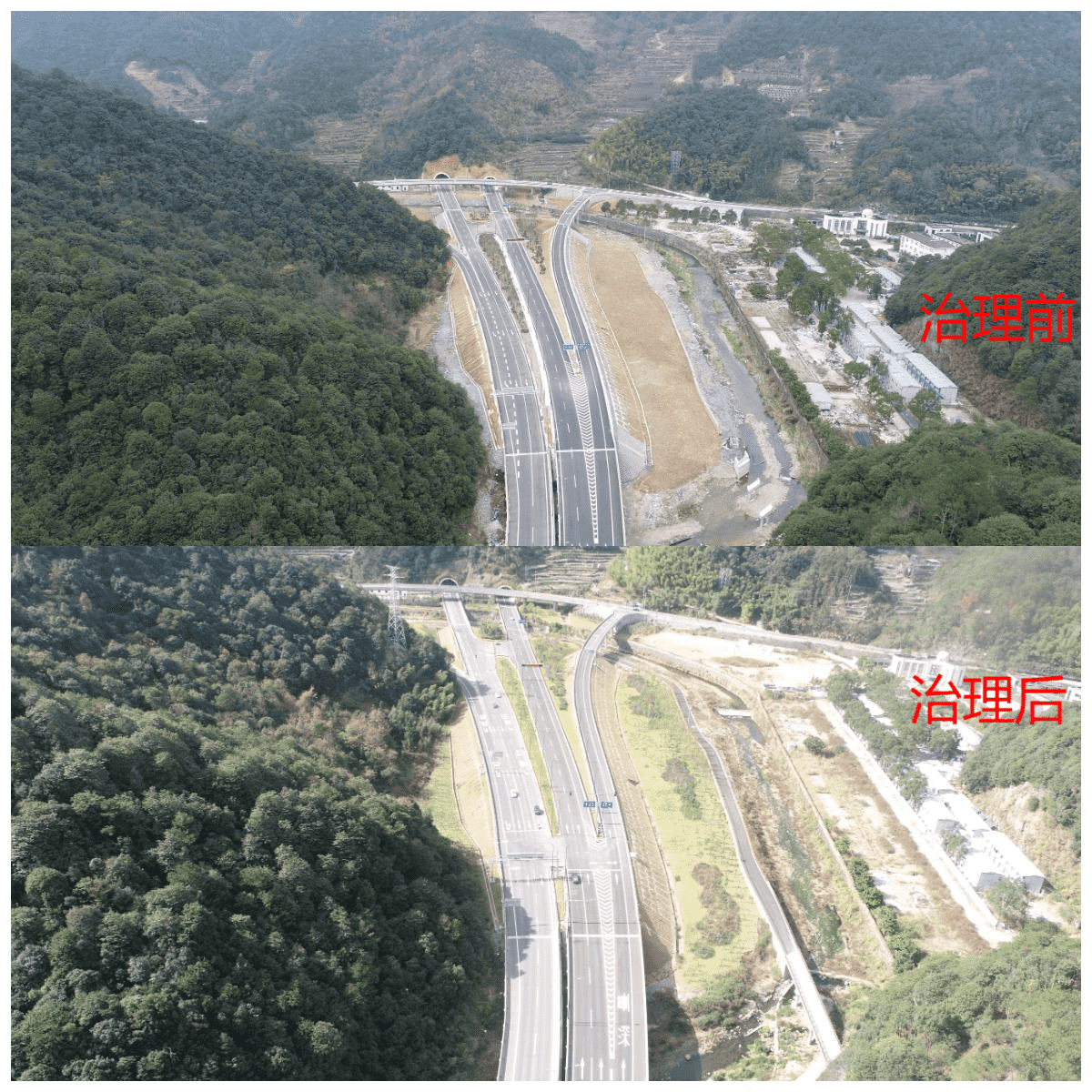 寧波市寧海縣38省道寧海橋頭胡至深甽段改建工程線路路線全長22.161km,共有大橋2316.36m/9座,中小橋463.64m/16座,涵洞113道,連拱隧道735m/2座;分離式隧道2480m/2座,平面交叉21處,分離式立交2處,互通式立交5處;交通安全、服務(wù)、管理設(shè)施22.161km。工程跨越地形條件復(fù)雜,包含多處橋涵工程、隧道工程和改河工程等。2012年,我單位受寧??h交通運(yùn)輸局委托開展該工程水土保持工作。為減少生產(chǎn)建設(shè)過程中產(chǎn)生水土流失,我院通過實(shí)地勘探掌握項(xiàng)目沿線自然條件,并結(jié)合主體設(shè)計(jì)資料,編制水土保持方案,為生產(chǎn)建設(shè)單位提供水土保持依據(jù)。且在建設(shè)過程中,我院為生產(chǎn)建設(shè)單位提供水土保持技術(shù)支撐,通過無人機(jī)、測釬等技術(shù)手段開展建設(shè)過程水土保持監(jiān)測,避免建設(shè)過程中出現(xiàn)水土流失隱患和問題。該項(xiàng)目已于2021年完成水土保持設(shè)施驗(yàn)收工作。