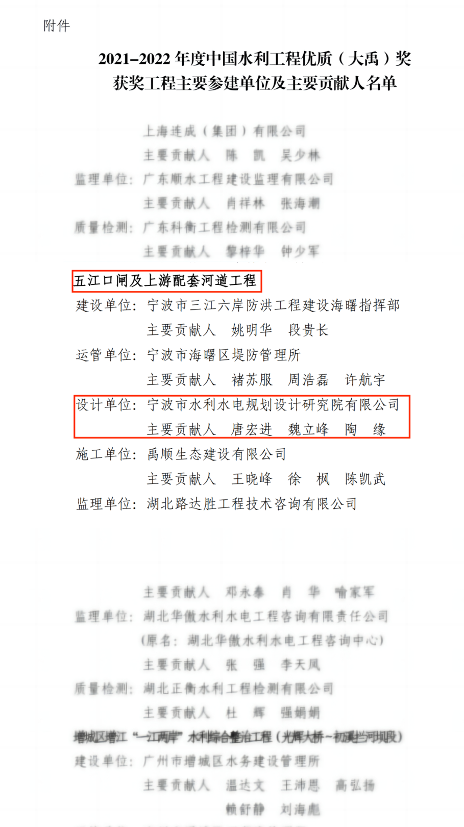近日,2021年~2022年度中國水利工程優(yōu)質(大禹)獎獲獎名單出爐,36個獲獎工程中,我院成功鎖定一席!此次我院設計的五江口閘及上游配套河道工程,是我院第七個榮獲大禹獎的項目。