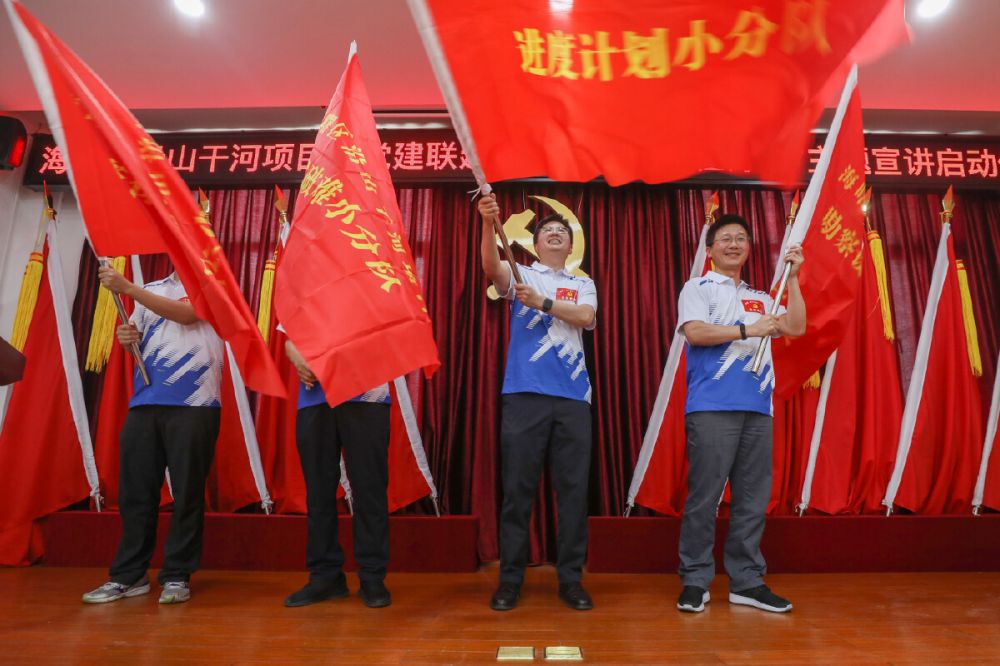 為響應(yīng)“把支部建在項目中,把黨旗插到工地上”的號召,充分發(fā)揮黨建在項目推進(jìn)中的引領(lǐng)作用,為項目攻堅破難、順利實施找準(zhǔn)“定盤星”、把穩(wěn)“方向盤”,“沿山干河項目臨時黨支部”正式揭牌,并成立了勘察設(shè)計、技術(shù)破難、融資保障、進(jìn)度計劃、征遷攻堅等五個小分隊,同時向五位主題宣講員頒發(fā)了聘書。我院工程院院長高煒杰入選臨時黨支部支委成員,何國華作為勘察設(shè)計小分隊代表接受授旗,何國華、陳欣、褚洪康受聘為主題宣講團(tuán)成員。