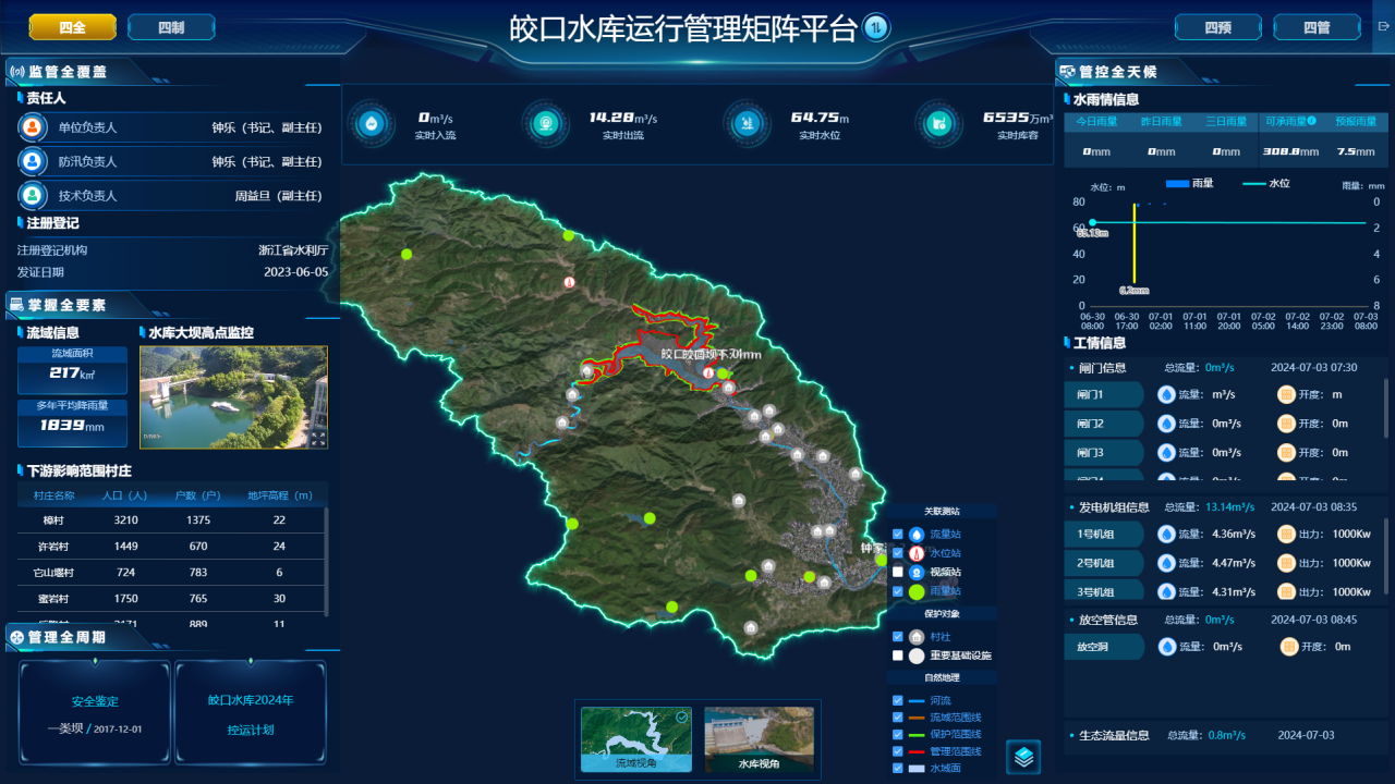 皎口水庫運(yùn)行管理矩陣平臺(tái)“四全”管理頁面