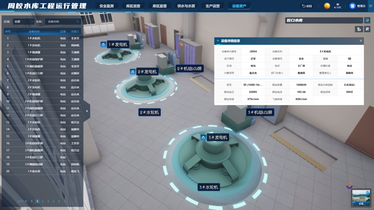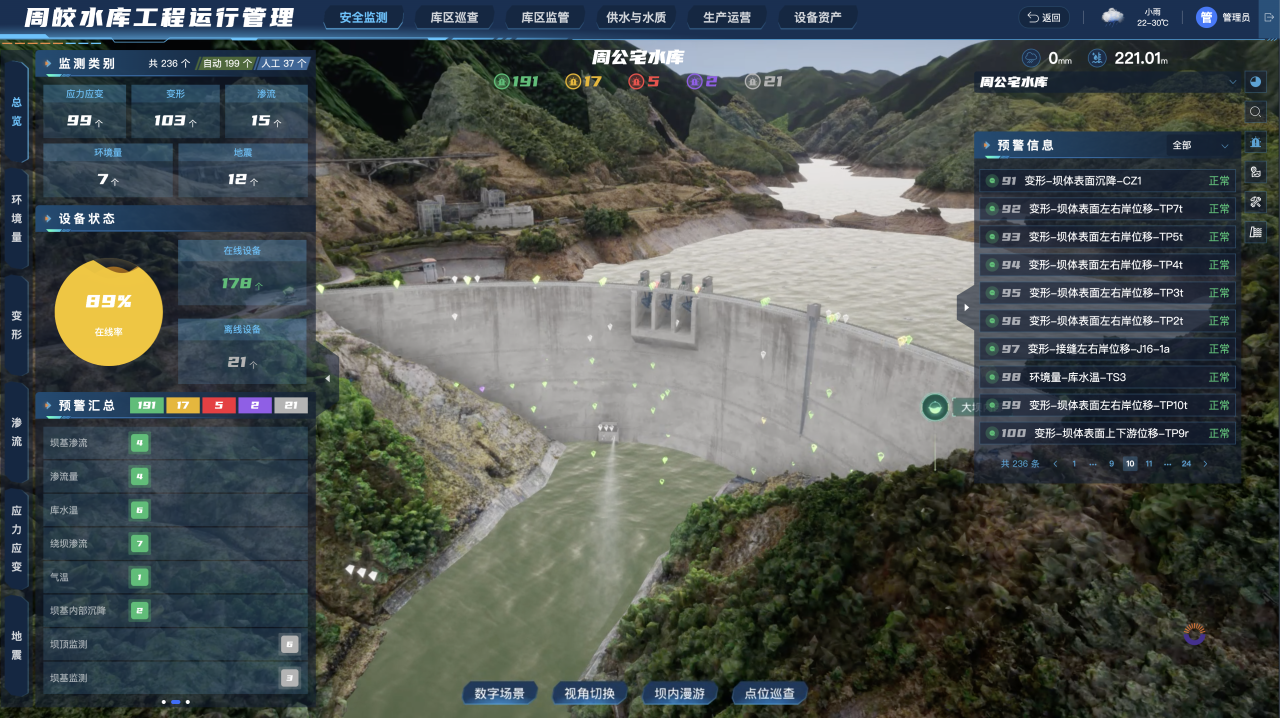 周公宅水庫運(yùn)行管理矩陣平臺(tái)“四管”工作頁面