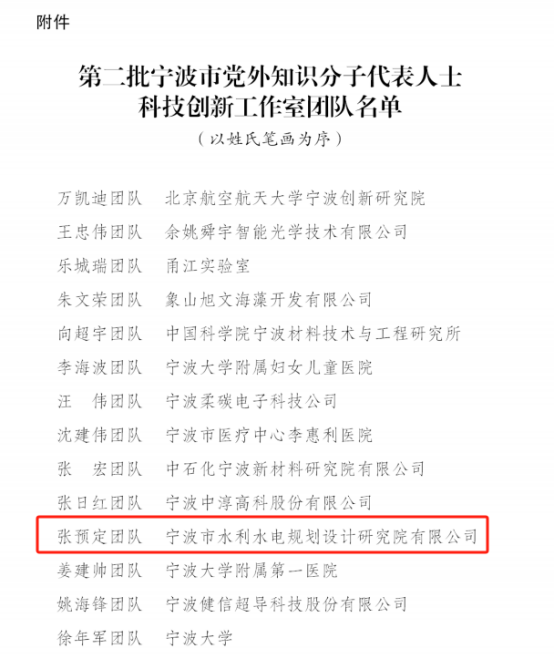 我院張預定創(chuàng)新工作室榮膺 “寧波市黨外知識分子科技創(chuàng)新工作室”